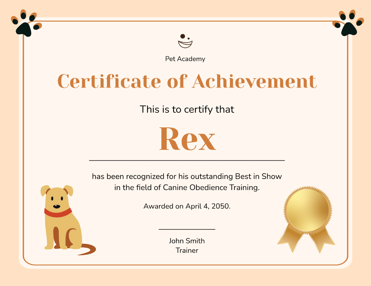 Bring Your Pet Recognition to Life with Dog Certificate Templates from Template.net