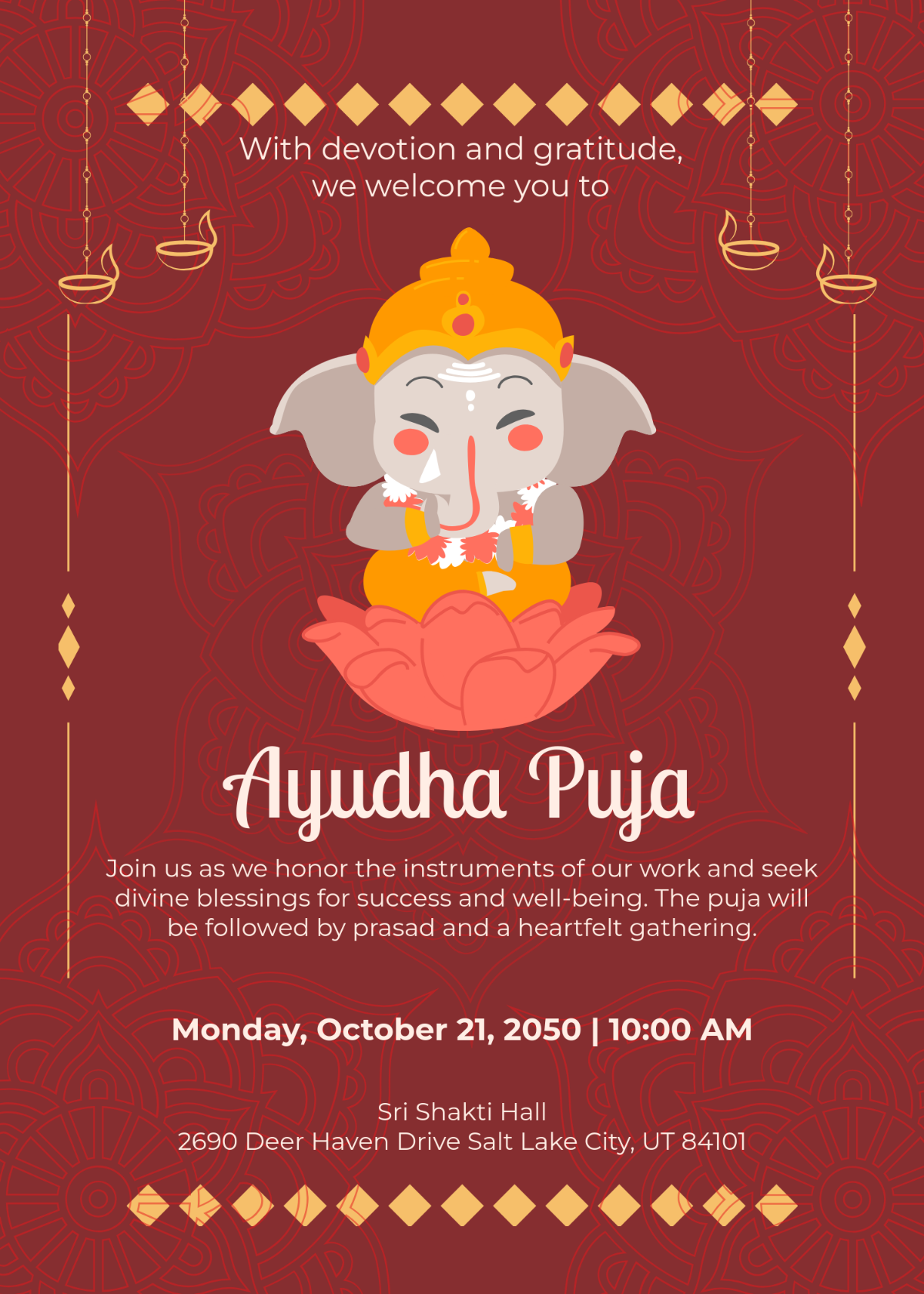 Invite guests to Maha Shivaratri celebrations with our Maha Shivaratri Invitation Card Template from Template.net. Whether you're hosting puja ceremonies, satsangs, or cultural programs, this customizable invitation card template is perfect for inviting friends, family, and community members. With its elegant design and fully editable features, you'll be able to create invitations that convey the sacredness and joy of Maha Shivaratri.