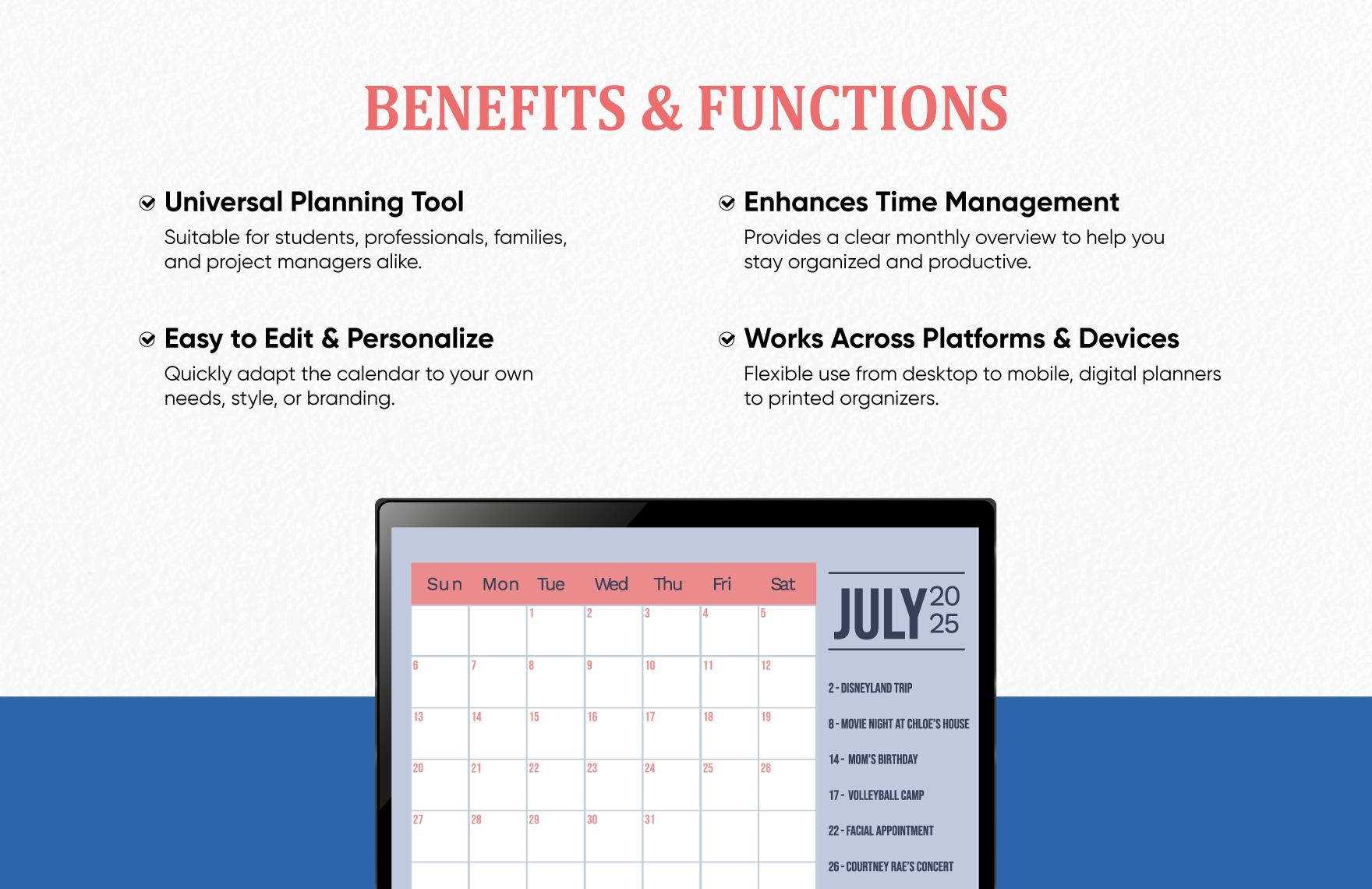 Download this July 2025 Monthly Calendar Template Design in Word, Google Docs, Excel, Google Sheets, Illustrator, Vector, SVG, Image Format. Easily Editable, Printable, Downloadable.