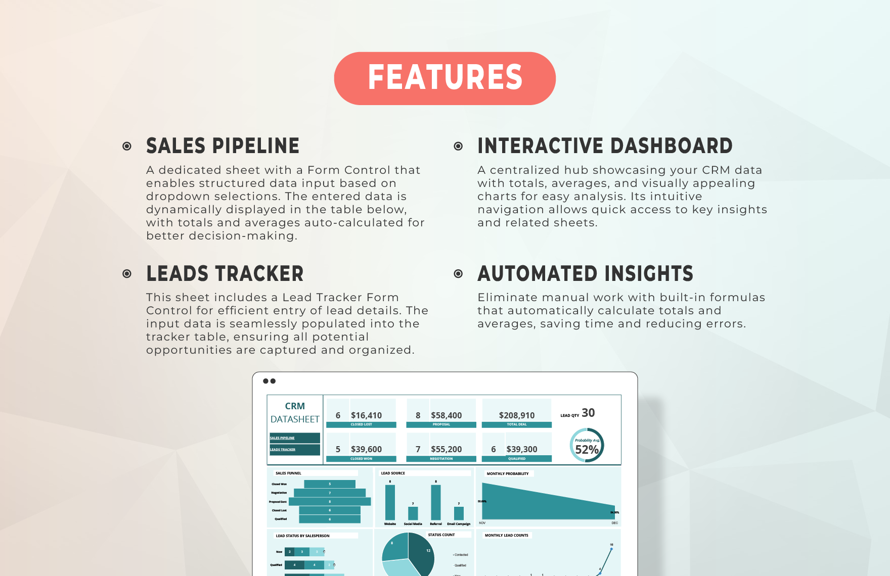 Optimize your CRM and sales tracking with the CRM Data Sheet Excel Template from Template.net. Manage leads, sales pipelines, and customer data with automated calculations, interactive dashboards, and insightful charts.